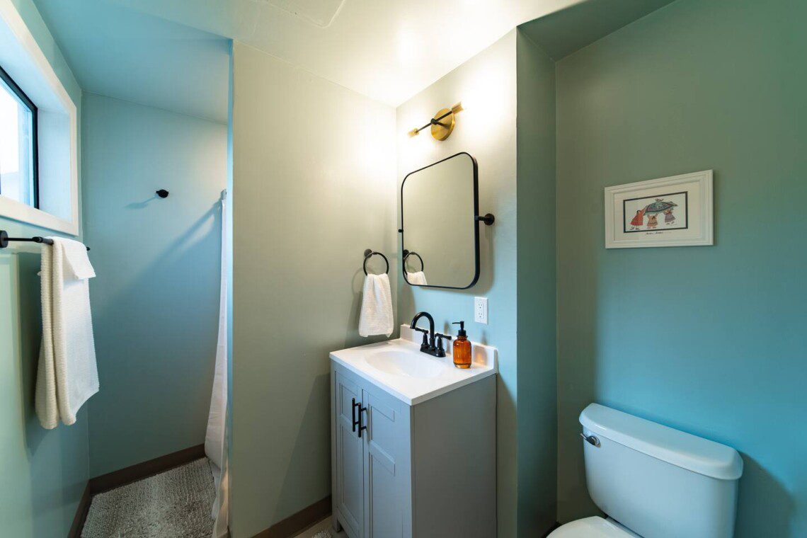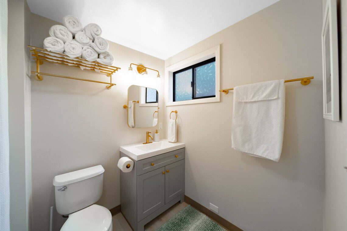 Two full bathrooms with modern updates: one with a tub + shower, one with a walk-in shower. Fresh towels and toiletries provided.