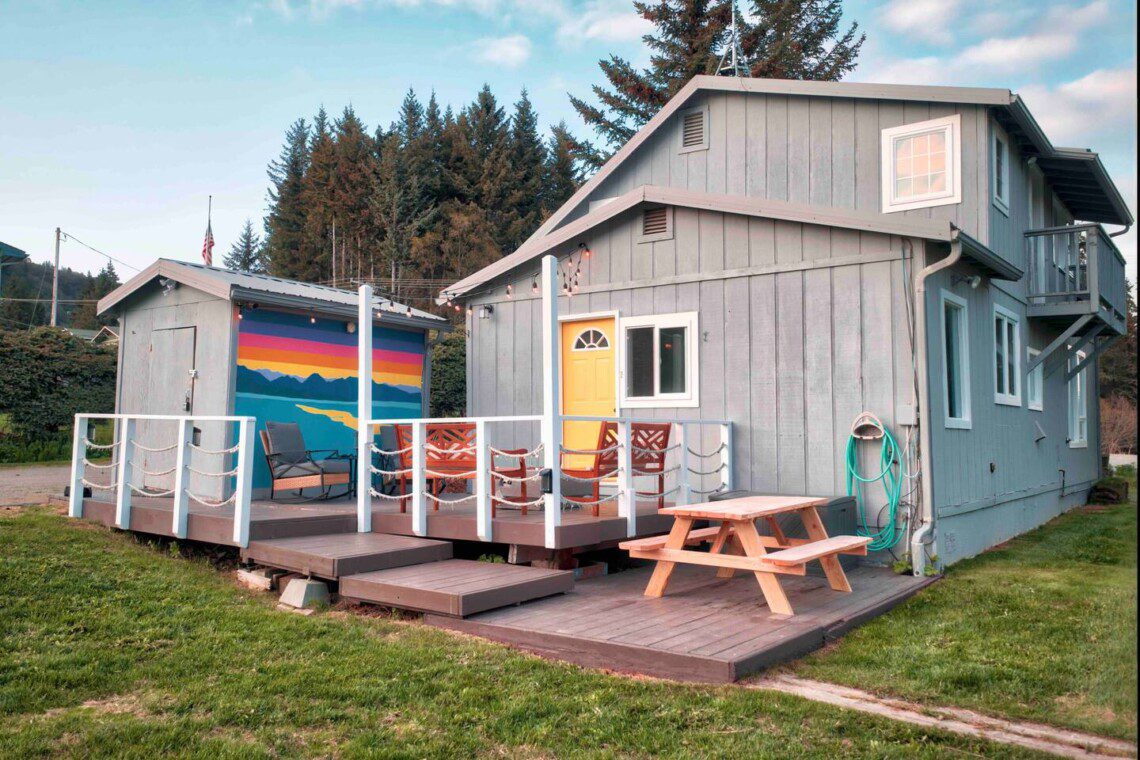 Stay in the heart of downtown Homer on a sunny half-acre with a gas fire pit and mural deck made for sunset hangs. This historic 4-bedroom bungalow sleeps 8 and feels surprisingly spacious, with spotless interiors, ultra-comfy beds, and a fully stocked kitchen. Guests love the fast Wi-Fi and cozy work nook, and it’s only a 3–5 minute walk to restaurants, coffee, Pratt Museum, and Bishop’s Beach, with the Homer Spit just 10 minutes away. Wildlife often visits the yard, adding true Alaska magic. Our centrally located home is 19 years older than Alaska’s statehood and has a colorful past—it once served as a volunteer firehouse, hosted Homer’s first telephone line, and was home to a local fish cannery proprietor. Today, it’s your stylish and comfortable basecamp for Kachemak Bay, the Spit, and the Kenai Mountains.