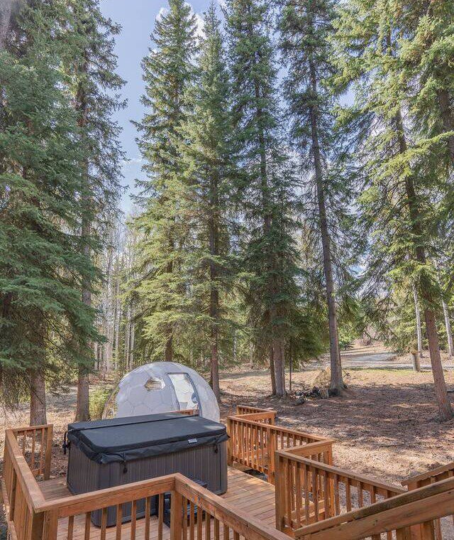 Catch the northern lights from the hot tub at Star Base 🌠, a unique retro star-shaped 4BR in Fairbanks! This spacious home sleeps 8, with a game room, geodesic dome, outdoor firepit and vintage design touches. Guests rave about aurora hot tub nights, comfy beds, spotless space, and location: private but only 12 minutes to downtown. From aurora viewing on the balcony to family game nights in the game room, consider Star Base your mission control for an out-of-this-world Alaskan experience! While you may feel light-years away from Earth, you’re still conveniently located near some far-out attractions and amenities: