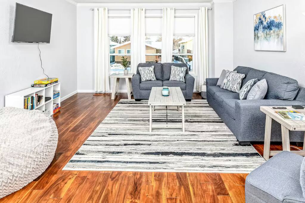 This Anchorage stay is designed for groups who want to actually be together. Not spread across hotels. Not split between rentals. Here, three fully furnished living spaces connect into one spacious retreat where people can cook, rest, laugh, work, and recharge on their own schedule. There is room for early risers and late sleepers, toddlers and teenagers, introverts and extroverts, plus quiet corners for naps, work calls, and downtime. When you reserve the entire property, every bedroom, every living space, every kitchen, and the hot tub beneath Alaska’s wide open sky are yours alone.
