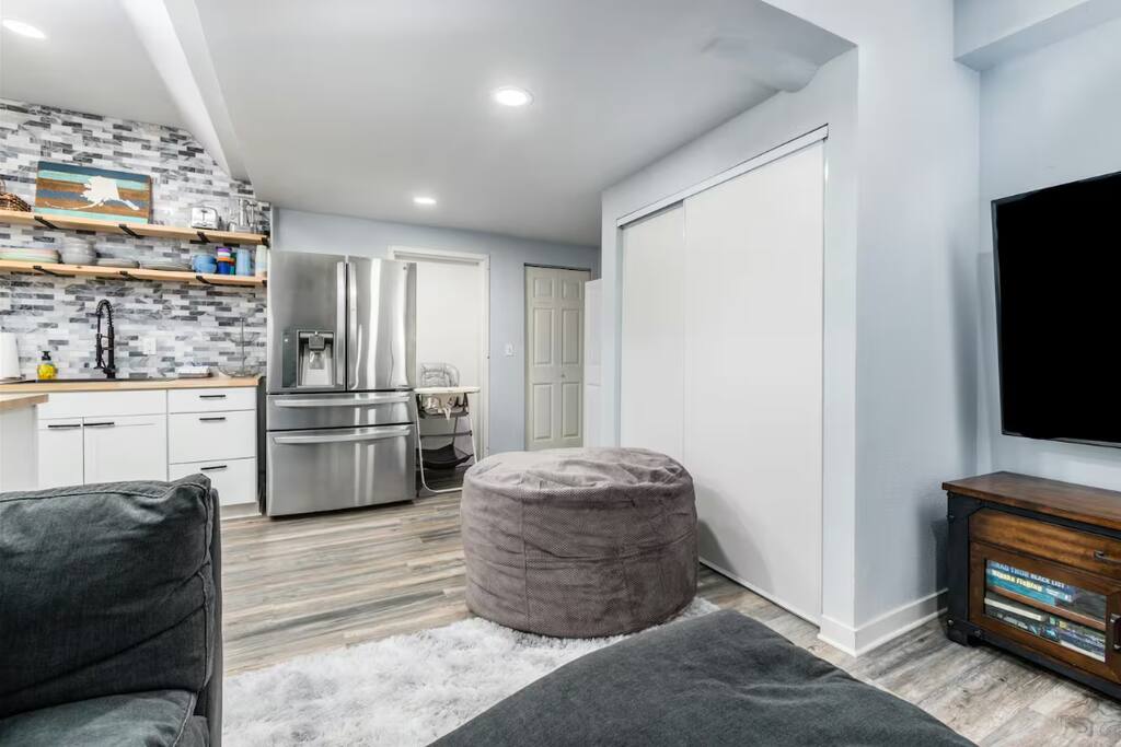 The property includes two side by side upper level living spaces, each with its own full kitchen, living room, dining area, bathrooms, and bedrooms. Both feel complete on their own so groups can split naturally while staying connected. The lower level studio offers another full kitchen, lounge space, bathroom, and laundry, creating a private retreat for grandparents, new parents, team leads, medical professionals on rotation, or anyone who needs extra peace and separation.