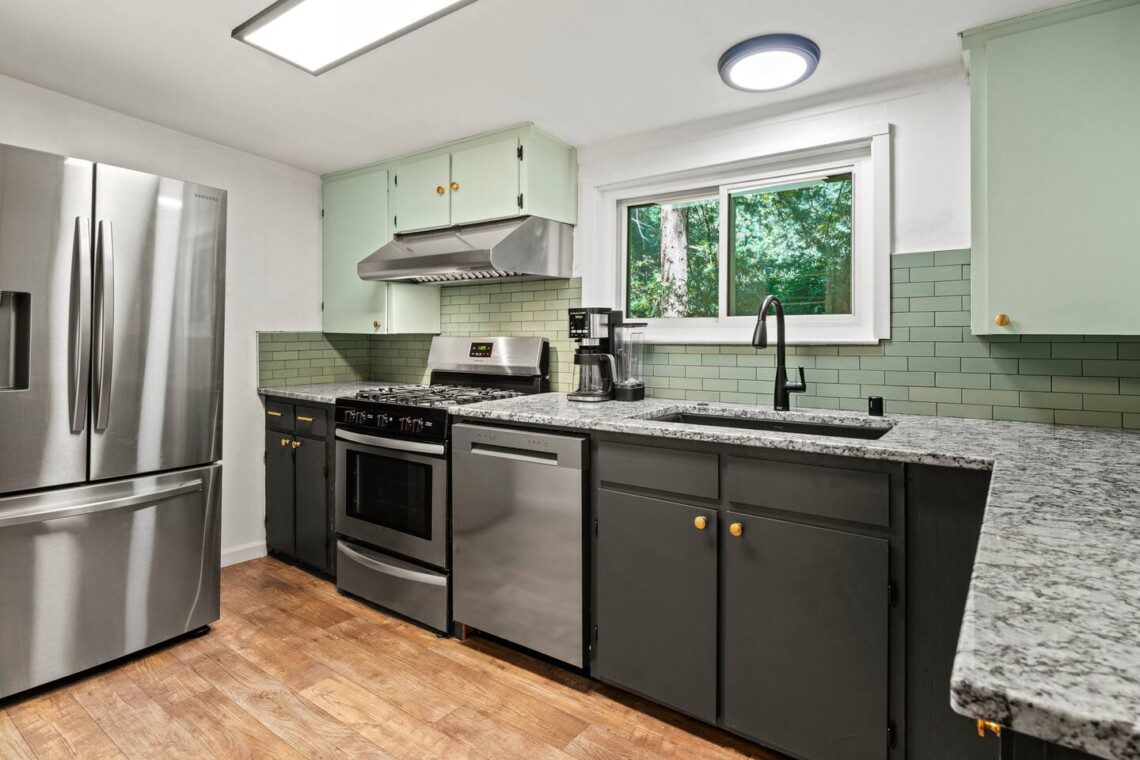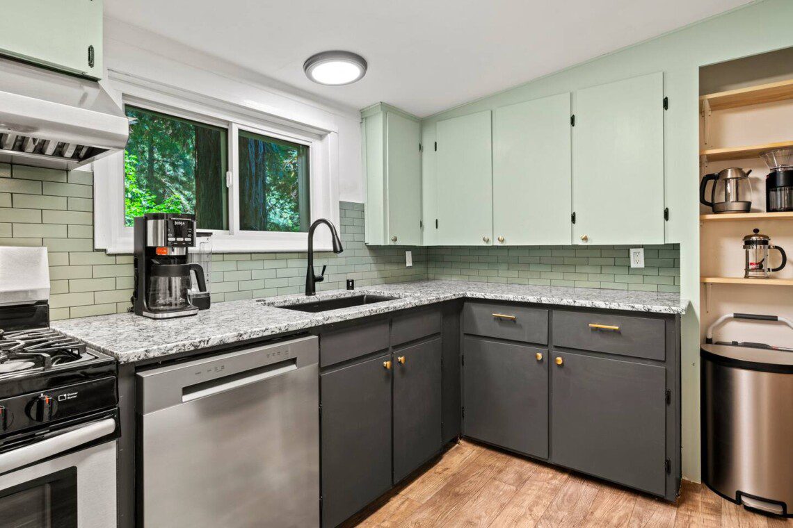 The kitchen is fully equipped and freshly renovated, with granite countertops, a range, oven, dishwasher, and all the cookware and utensils needed to prepare anything from a quick breakfast to a full dinner party. The adjacent dining area offers a welcoming space to gather, eat, and unwind—whether you’re enjoying takeout from Occidental or a meal of your own making.